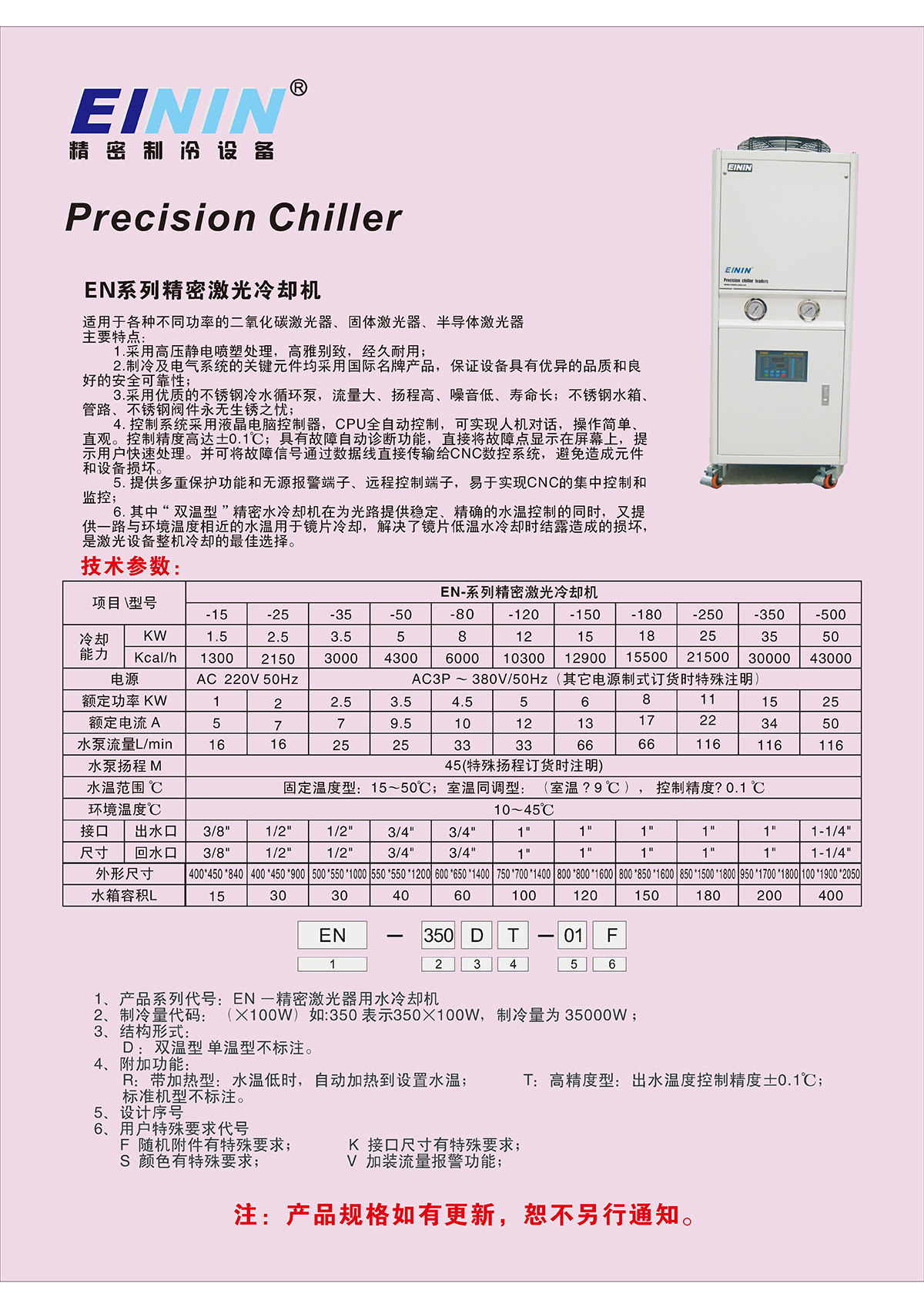 規(guī)格參數(shù)表 EN系列精密激光冷卻機(jī)